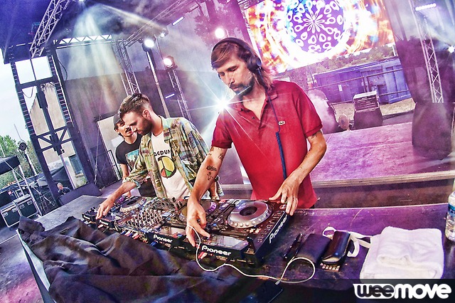 A 20h, on part pour la première fois du week-end vers la scène du village, et pas pour rien ! Pendant 1h, notre pote John Spano joue en compagnie d’Alixun, ancien membre des SouthBangers. Le duo toulousain nous fait vraiment plaisir et dégage beaucoup d’énergie ! De « Everybody » de Shapov à « Bababa » de Michael Feiner en passant par une de leur track ID, leur répertoire est bien garni ! On vous parle souvent de John Spano car on apprécie la personne et on se croise souvent en soirée, mais c’est la première fois qu’on le voit jouer… Et ça nous fait bien plaisir ! On reste un peu avec eux pendant Qhuit Party. John en profite pour nous présenter au patron du festoch’, merci mec !