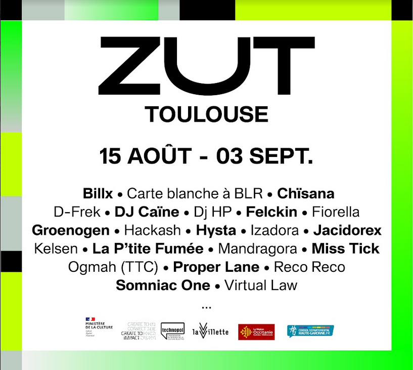 Comme vous l’avez vu sur la photo de l’article, le programmation est, comme promise, éclectique, avec de très jolis noms d’artistes. Pour mobiliser tous ces talents, nos associations préférées se sont serrés les coudes pour notre plaisir. Nous avons juste à remercier les partenaires pour les ZUT Occitanie à savoir Regarts Asso, KARNAGE RECORDS, Koalition Festival, Plein Phare, Biphase, Le Bikini et le Bel Air Festival sans qui tout cela n’aurait pas été possible.