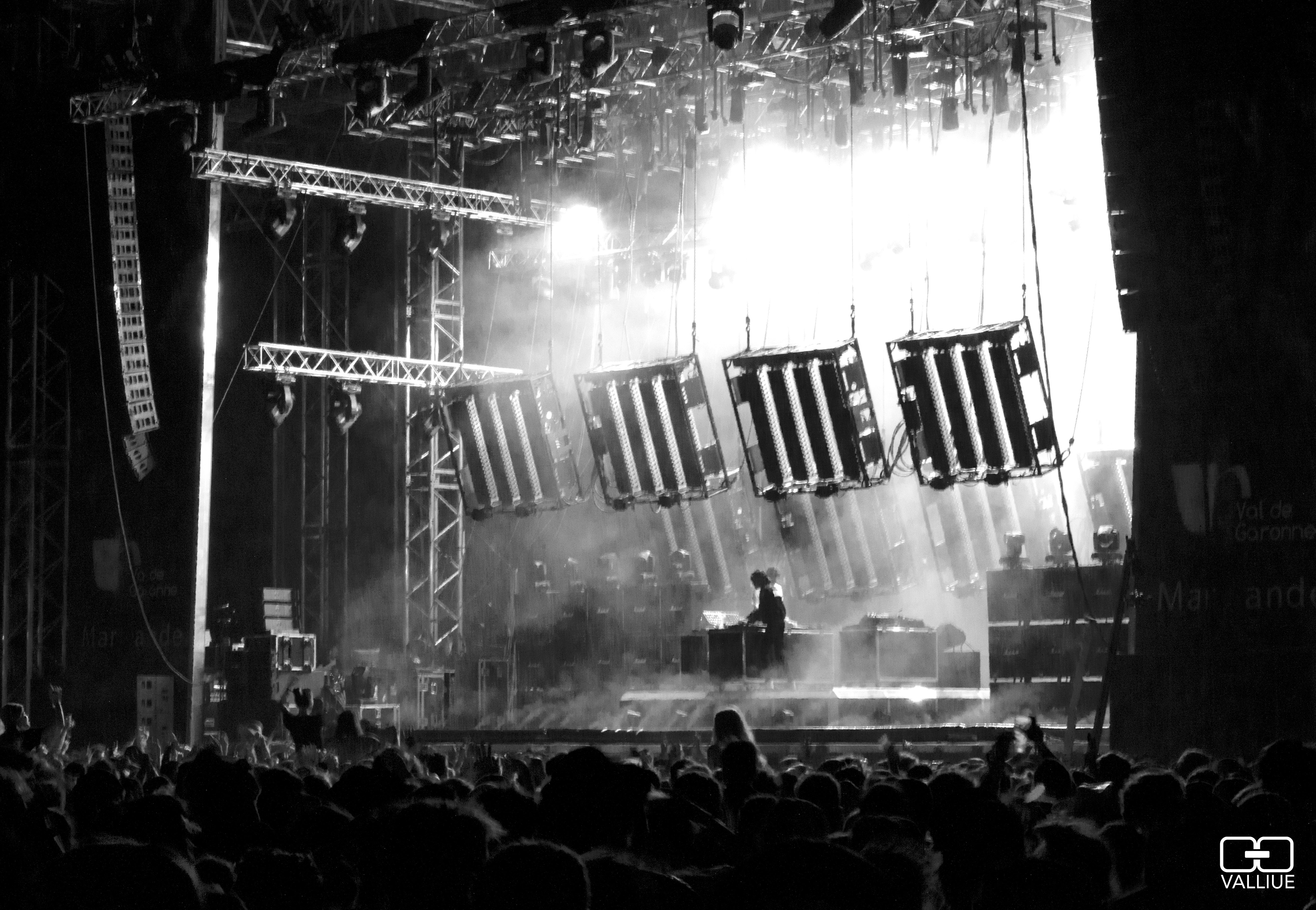 C’est parti pour la seconde journée du Garorock ! Le sol est moins glissant, mais toujours bien boueux ! De la boue à la Filhole… On se croirait à la Farfelue ! On a rendez-vous avec le duo Trinix à 17h50 pour une petite interview. Très courte, les jeunes français ont tout de même accepté de répondre à nos questions, merci beaucoup ! De suite après, on se dirige vers la Scène Garonne pour voir Sinners, le nouveau projet parallèle de N’to et Joachim Pastor. Admirateur de tout ce qui touche à Hungry Music (vous pouvez d’ailleurs retrouver notre interview de Worakls), c’est un plaisir de les voir ici ! Au tout premier rang, on peut voir le plaisir que prennent les deux français, et plus particulièrement Joachim Pastor qui ne cache pas sa joie de jouer devant le public marmandais. Leur passage est beau et transportant, cette deuxième journée commence très bien ! 20h45, le duo Trinix (que nous avons interviewé quelques heures avant, c’est bien vous suivez !) joue au Garoclub. Sourires aux lèvres, nul doute que les deux français se font plaisir devant une foule très réceptive. Même si l’on n’écoute pas ça habituellement (loin de là même !), on se dirige vers la scène de la Plaine pour voir London Grammar. C’est (trop ?) calme certes, ça n’en reste pas moins plaisant. Une belle voix, une pop envoûtante.. Difficile de ne pas chanter avec eux leur tube « Wasting My Young Years » ! En suivant, MIA débarque sur la scène Garonne. On l’attendait beaucoup, et on vous avoue avoir été un peu déçu… Peut-être que son micro était mal réglé ? En tout cas, ses cris nous ont fait mal à la tête ! De plus, ses titres ne passaient pas si bien que ça en live… Elle n’a même pas passé l’un de ses plus gros succès « Yala », et a joué moins que prévu. Par contre, elle a souhaité faire monter quelques personnes du public sur scène, et ça c’est cool !