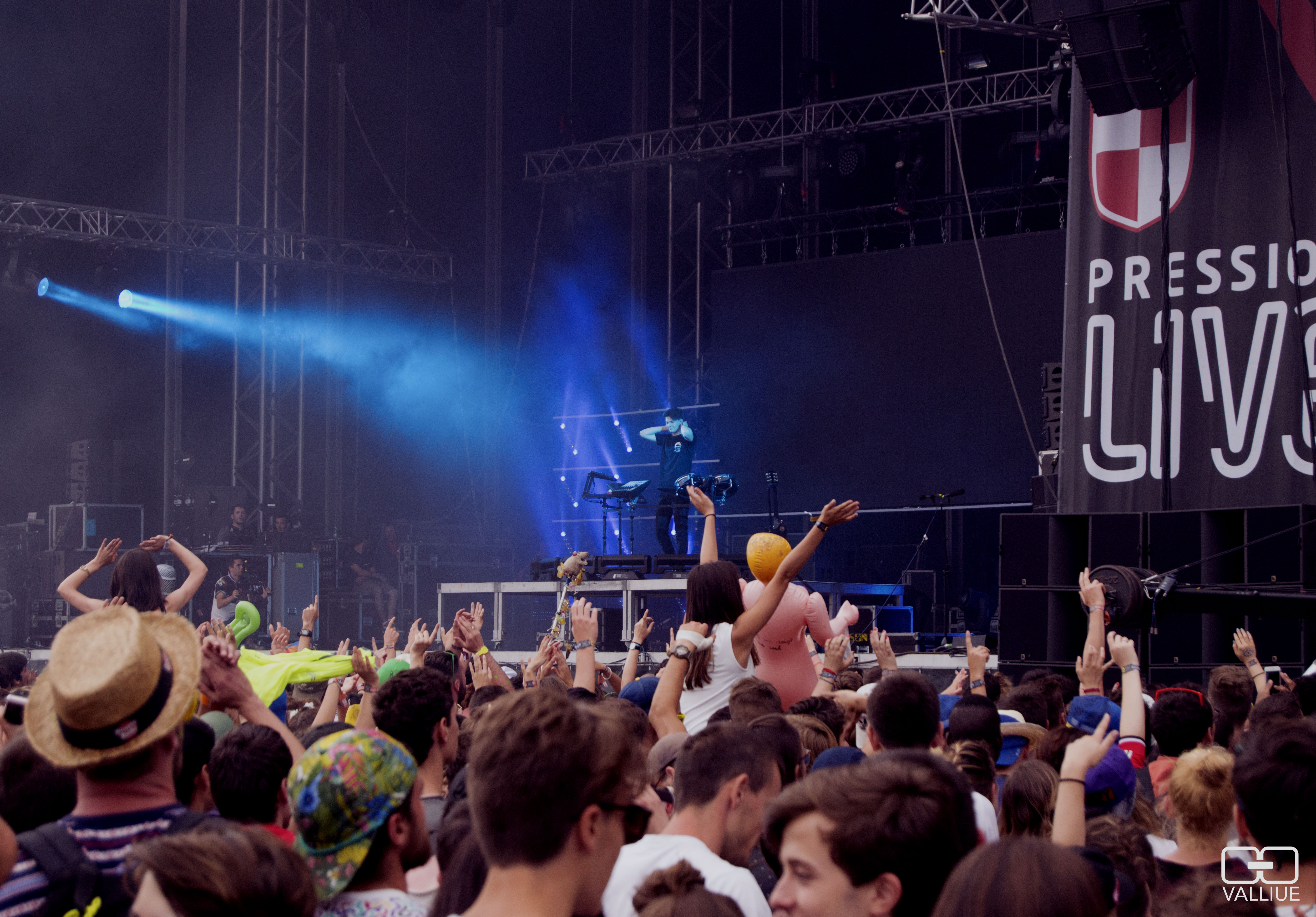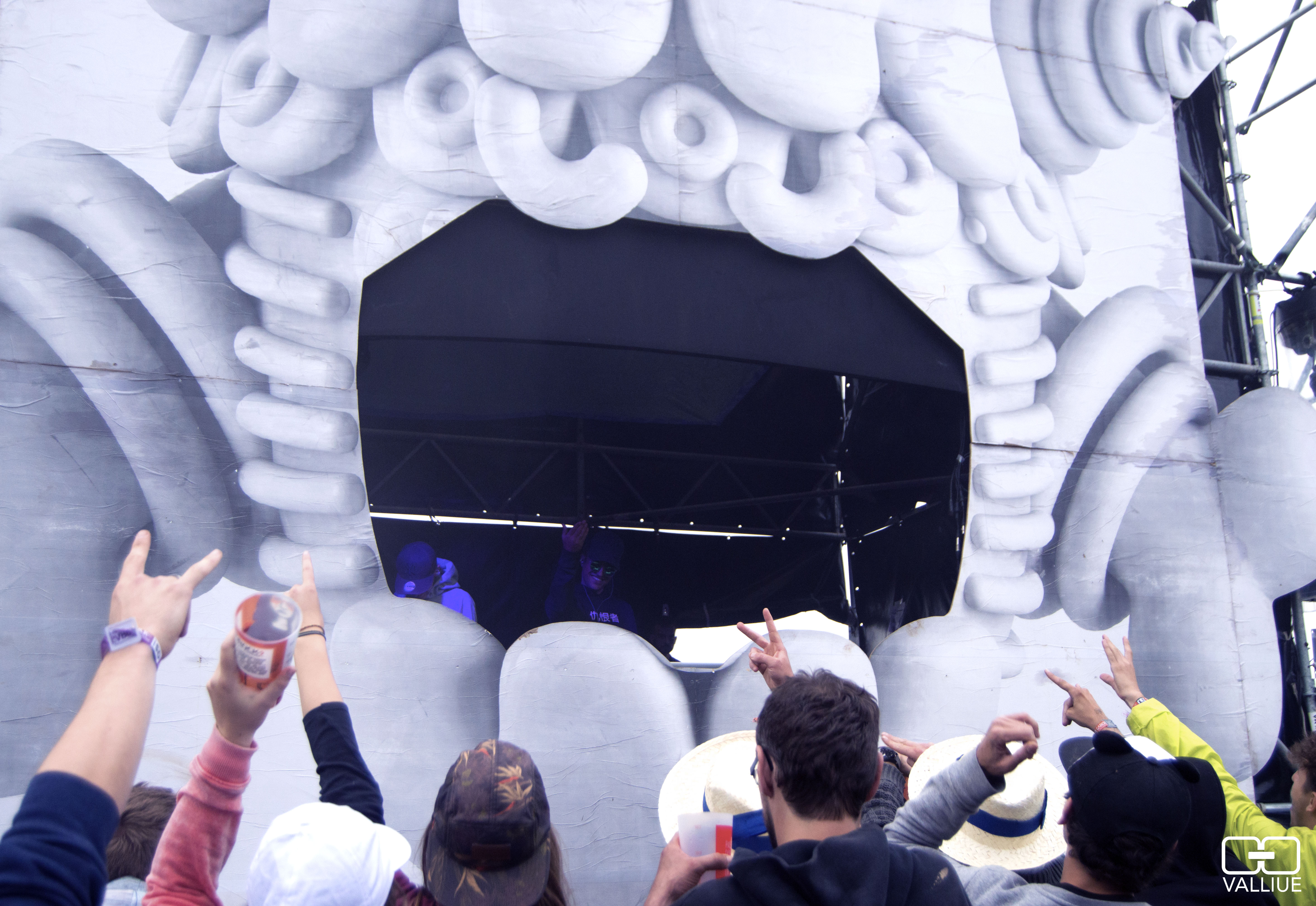 Georgio s’exerce sur la Scène Garonne. Le rappeur parisien prend son pied ! Même si on n’est pas forcément fan de base, il dégage quelque chose derrière son micro et sa communauté de fans semble adorer. 19h15, il est temps pour nous de rejoindre le Garoclub. Pourquoi ? Parce que le jeune Rusty Hook va nous envoyer de la trap dans la figure ! Le jeune lot-et-garonnais partage un set très plaisant, avec des références que l’on a en commun, comme San Holo ou Alison Wonderland par exemple. Son choix de passer I Can’t Stop de Flux Pavilion a, logiquement, fait vriller la foule. Quel bonheur, un de nos sets préférés de tout le week-end ! La pluie battante n’a pas réussi à gâcher ce moment, même si l’on a été obligé de s’abriter aux toilettes quelques minutes (on rigole pas quand on dit qu’il a vraiment plu…). On se dirige dès à présent dans la salle des conférences de presse, afin de poser quelques questions au talentueux agenais. Sympathique en plus d’envoyer derrière les platines, on a hâte de vous partager notre interview sur Valliue ! En suivant, on en profite pour aller faire un petit coucou à l’équipe de Konbini, qui est également sur les lieux ! Pendant ce temps-là, Mo s’exerce sur la scène Garonne. Après avoir mangé nos « burgers préférés de festoch' » au stand « Les Mecs au Camion » (comme au Water Mix !), on se dirige vers la scène du Trec pour… Little Big ! La pluie se calme enfin, et les russes font leur apparition pour un passage complètement déjanté. Alors qu’on les a connu grâce au YouTubeur Antoine Daniel (« C’est normaaaal en Russiiiie »), le groupe russe fait son show sur scène, en envoyant leurs plus gros titres comme « Hateful Love », « Everyday I’m Drinking » ou encore « Give Me Your Money ». Mêlant musique fracassante et personnages originaux, c’est typiquement le genre de groupe que l’on adore retrouver à la Filhole (à l’image de Die Antwoord, Salut C’est Cool, Dope DOD…) ! En suivant, on décale vers le Garoclub pour voir la fin du DJ set de Jennifer Cardini : au top !