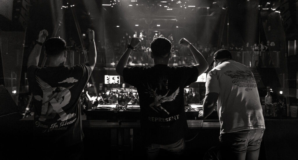 Nous ne nous attendions pas à avoir Akimbo & Revealer en closing, après que Yoshiko ait détruit les fêtards avec toute sa puissance, mais les 3 Hollandais ont relevé le challenge haut la main ! Véritables artistes à suivre de la scène Bouncy actuelle, le choix des musiques jouées était aussi ici à la pointe de l’actualité. En effet, les artistes jouent leurs tracks phares, respectivement « Hasagi » et « Moshpit » , de quoi rendre fou un de nos rédacteurs venus tout droit d’Angers spécifiquement pour ce soir ! La force de Valliue réside également dans sa répartition géographique ! Pendant tout le set, STV et Yoshiko s’ambiancent sur scène, en montant sur les podiums ou en prenant du temps avec leurs fans aux crash barrières. Le set suit son cours avec des compositions telles que « Classified vs Overdrive Tool » de Revealer ou « Capture The Flag » des Akimbo. Ici aussi, la liste des sons reconnus est plus que longue !