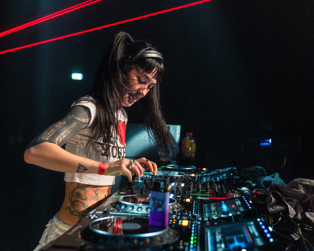 Quitte à être dans le Zaag, autant y rester ! Véritable figure de la folie qu’est l’Uptempo actuellement, Yoshiko n’est pas venue au Bikini pour jouer de la tendresse. Alors que Revealer et les Akimbo s’éclatent derrière elle, Yoshiko pousse les curseurs avec « TOTY » ou ‘Rip City » . Il faut le noter, tout le set de l’Italienne n’est pas constitué de Zaag puisqu’elle joue « Hurt » mais aussi « BKJN » de Lekkerfaces, qui a lui aussi foulé le sol du Bikini récemment.