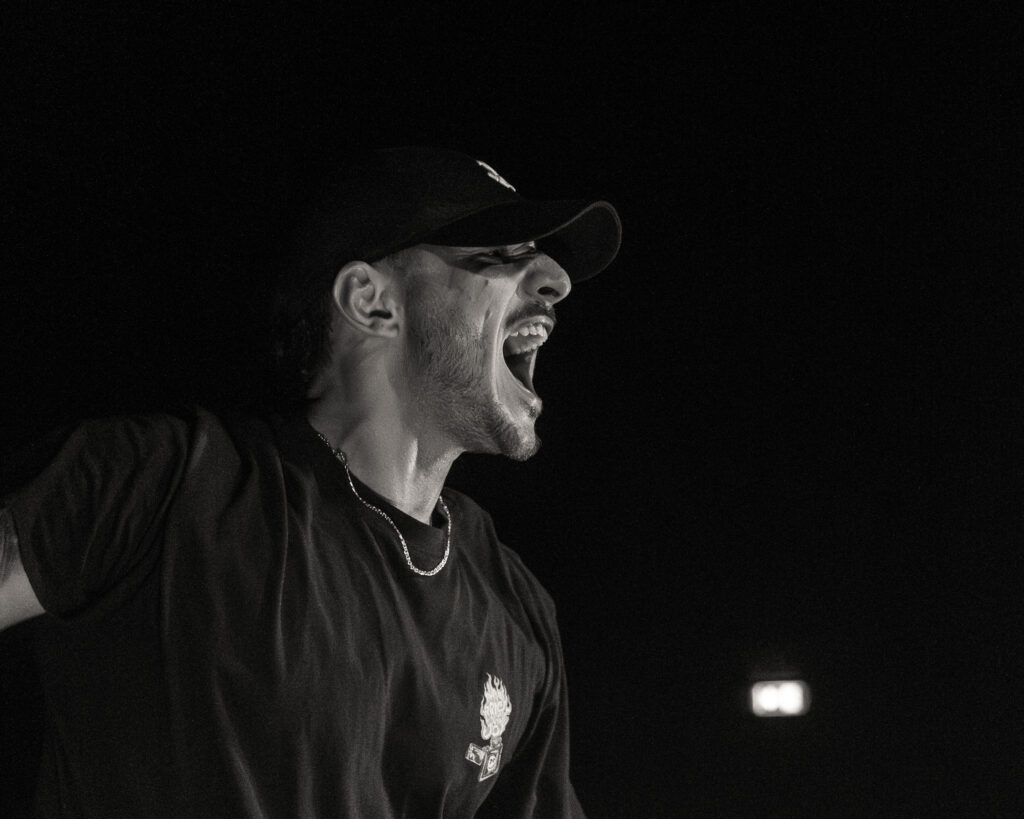 La transition avec Hackash se fait à l’aide du MC (improvisé) PigMinds qui demande à la foule d’acclamer la remarquable performance de Micella qui fêtait son premier set au Bikini ! Hackash s’installe donc aux platines et il nous l’avait annoncé : son set rendra hommage au Hardcore à l’ancienne, comme l’a été son précédent set à la Fury! de 2024 ! Spoiler alerte, un peu plus d’un an après, le choix des tracks reste exceptionnel avec notamment « Abduction » d’Endymion enchaîné de « The Voice Of Mayhem » … de quoi mettre des frissons aux plus passionnés de la salle ! De Art Of Fighters à Noize Suppressor en passant par Angerfist, le voyage aux origines est complet !